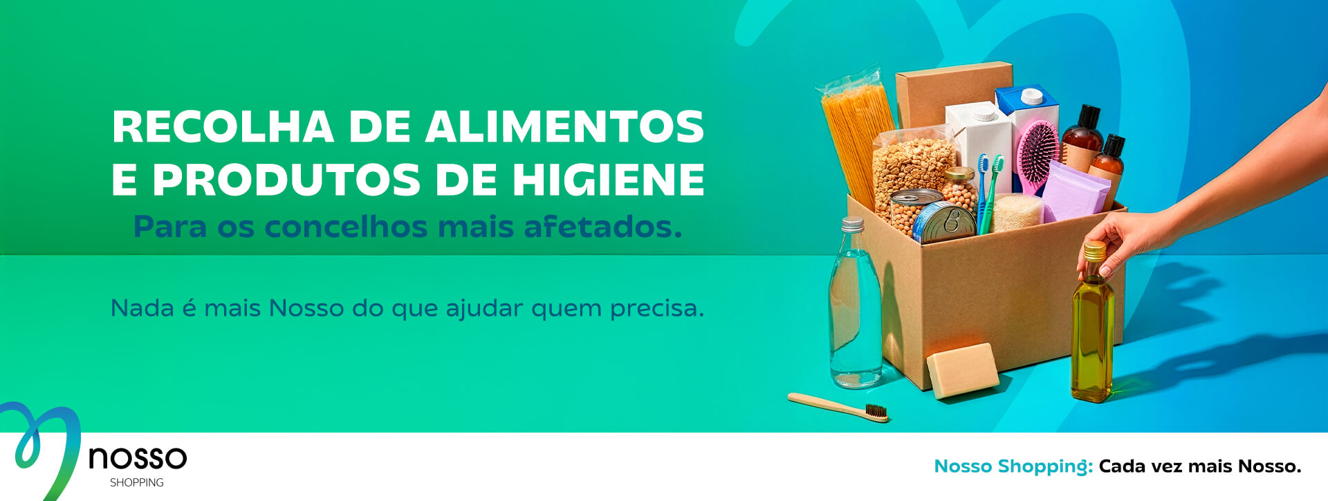 As tempestades que afetaram Portugal mudaram as vidas de milhares de pessoas, mas todos podemos ajudar os concelhos mais afetados. Por isso, o Nosso está a recolher donativos de bens alimentares não perecíveis e produtos de higiene no Balcão de Apoio ao Cliente, para depois fazer chegar aos mais afetados pelas tempestades. A recolha de donativos estará em funcionamento até às 22h00 de quarta-feira, dia 4 de fevereiro.