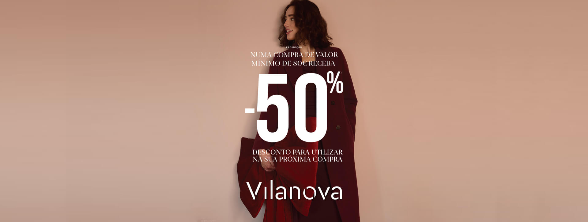 O REBATE DO VOUCHER DE 50% DE DESCONTO É VÁLIDO EM TODAS AS LOJAS FÍSICAS VILANOVA (INCLUINDO AS LOJAS DE ACESSÓRIOS). OS VOUCHERS DE 50% DE DESCONTO GERADOS NA LOJA ONLINE VILANOVA E APP NÃO SÃO VÁLIDOS NAS RESTANTES LOJAS FÍSICAS (E VICE-VERSA).